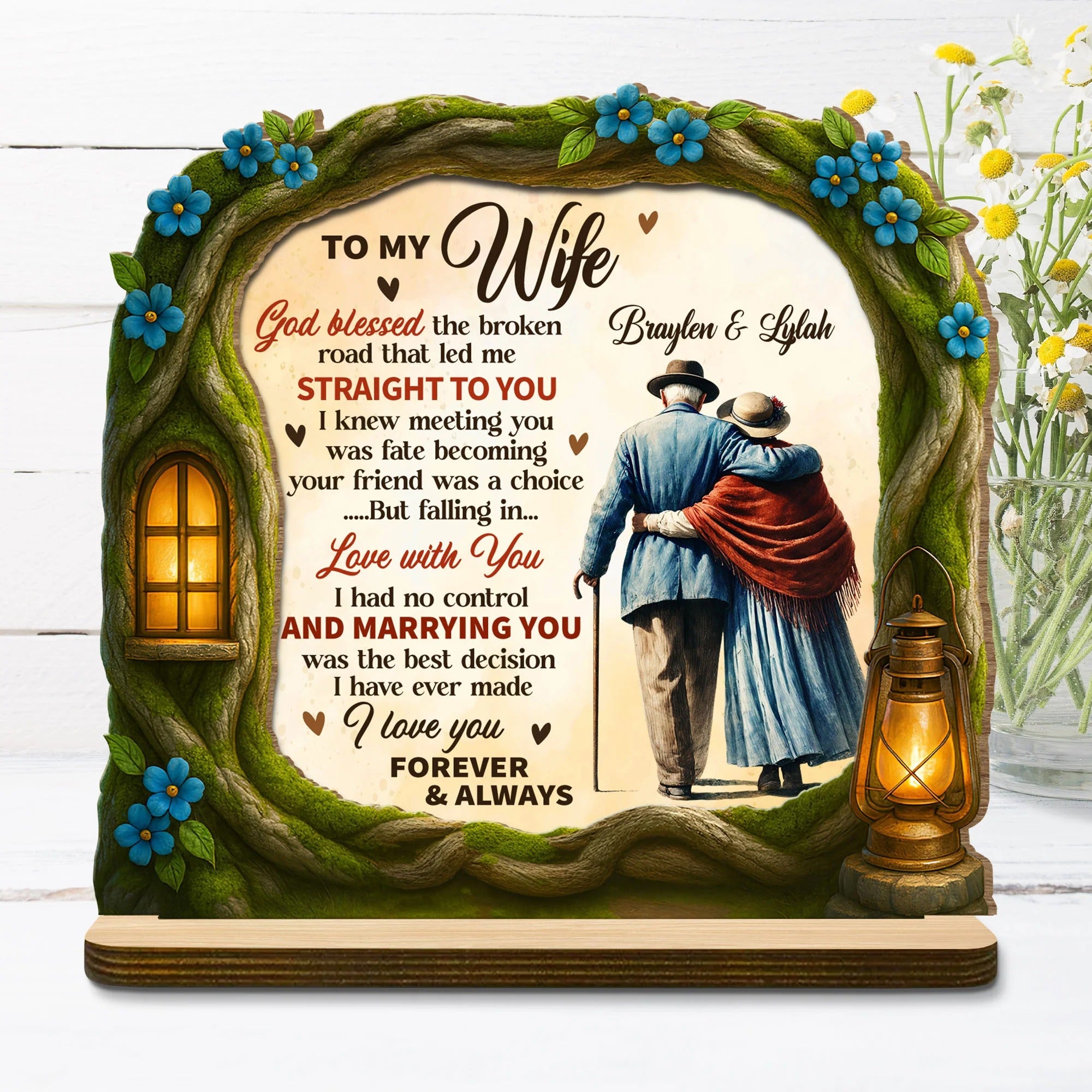 God Blessed The Broken Road That Led Me Straight To You 2-Layer Wooden Plaque, Personalized Valentines Gift