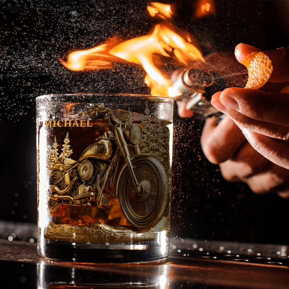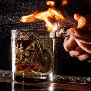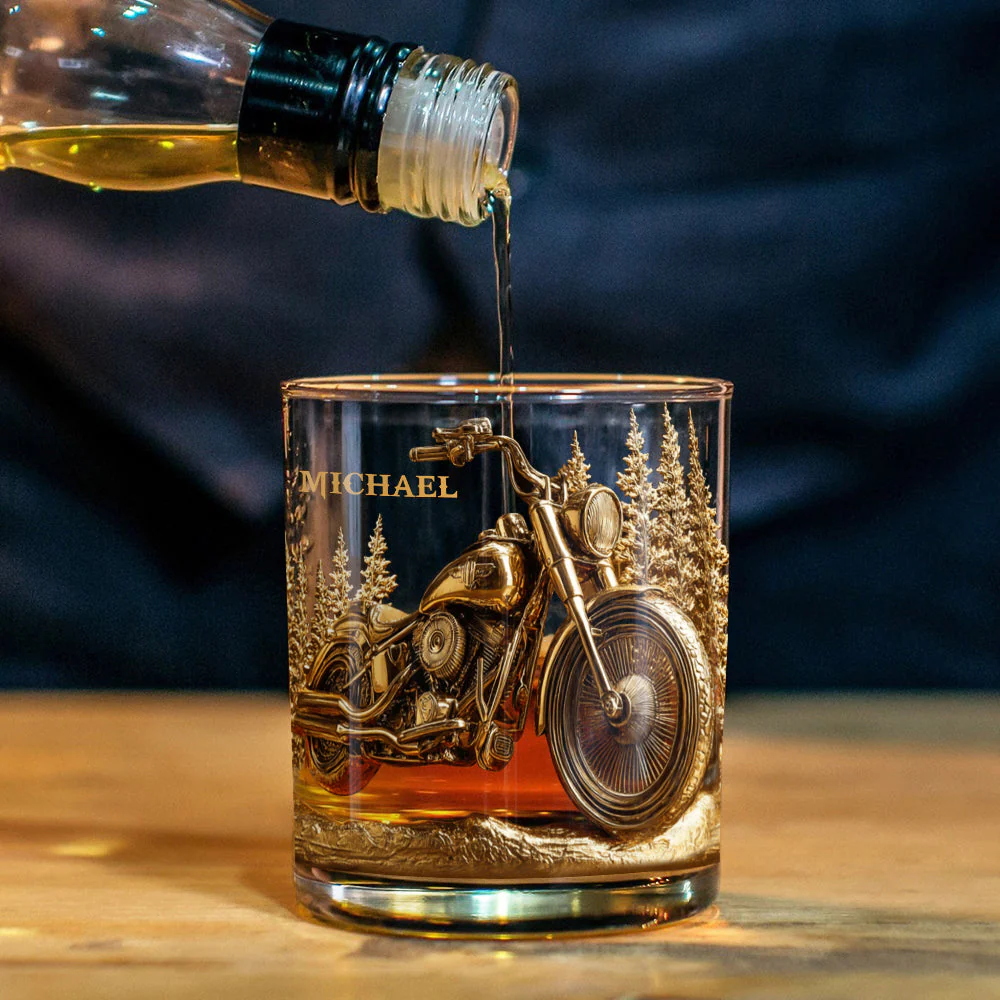 Golden Motorcycle Custom Whiskey Glasses, Gift For Whiskey Lover, Custom Rocks Glasses