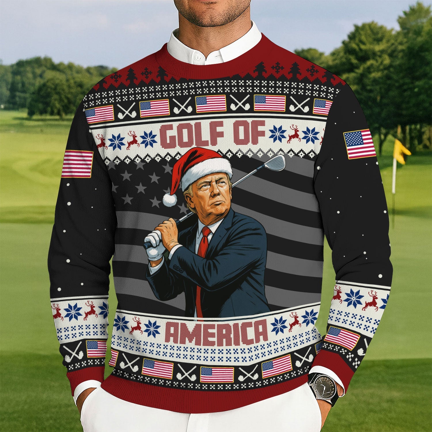 Golf Of America Trump President Santa Christmas Ugly Sweater, Golf Ugly Christmas Sweater, Christmas Golf Shirt
