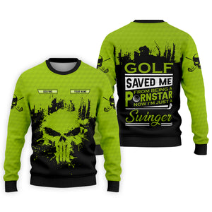 Golf Saved Me From Being A Porn Star Now I'm Just A Swinger Custom Green Skull Golf Polo Shirt, Dad Golf Gift