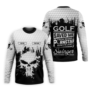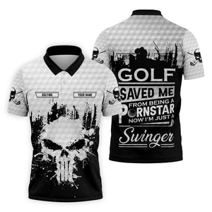 Golf Saved Me From Being A Porn Star Now I'm Just A Swinger Custom White Skull Golf Polo Shirt, Dad Golf Gift