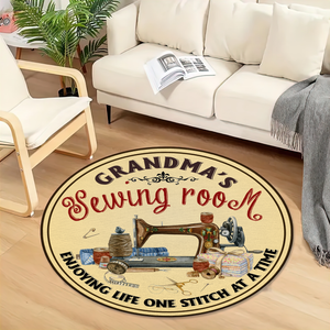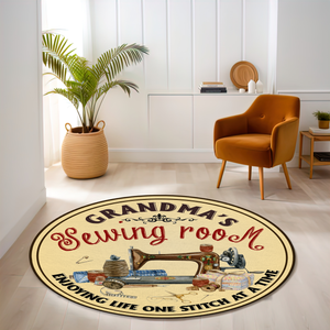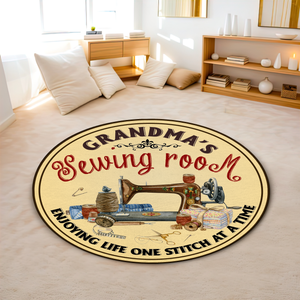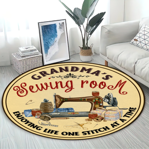 Grandma's Sewing Room Personalized Round Rug, Sewing Lovers Gift, Craft Room Decor