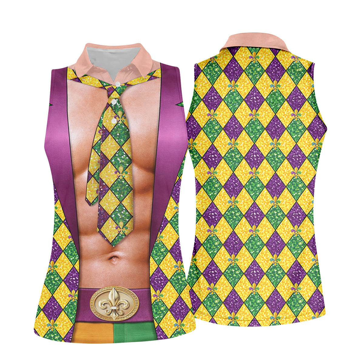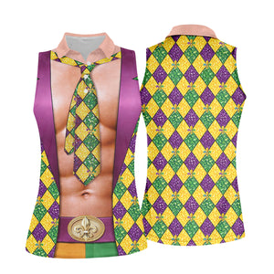 Green Purple Gold Argyle Pattern Fun Suit Mardi Gras Print Golf Shirt, Fun Women's Golf Shirts, Ladies Golf Polos