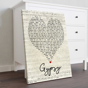 Gypsy Fleetwood Mac Script Heart Song Lyric Art Print Canvas Print Frames