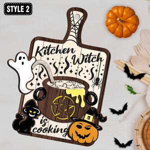 Halloween Kitchen Witch Cooking Cutting Board, Halloween Gift, Kitchen Decor