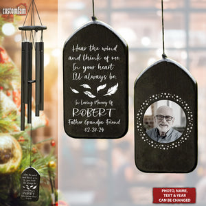 Hear The Wind And Think Of Me Custom Photo Memorial Wind Chimes, Sympathy Gift