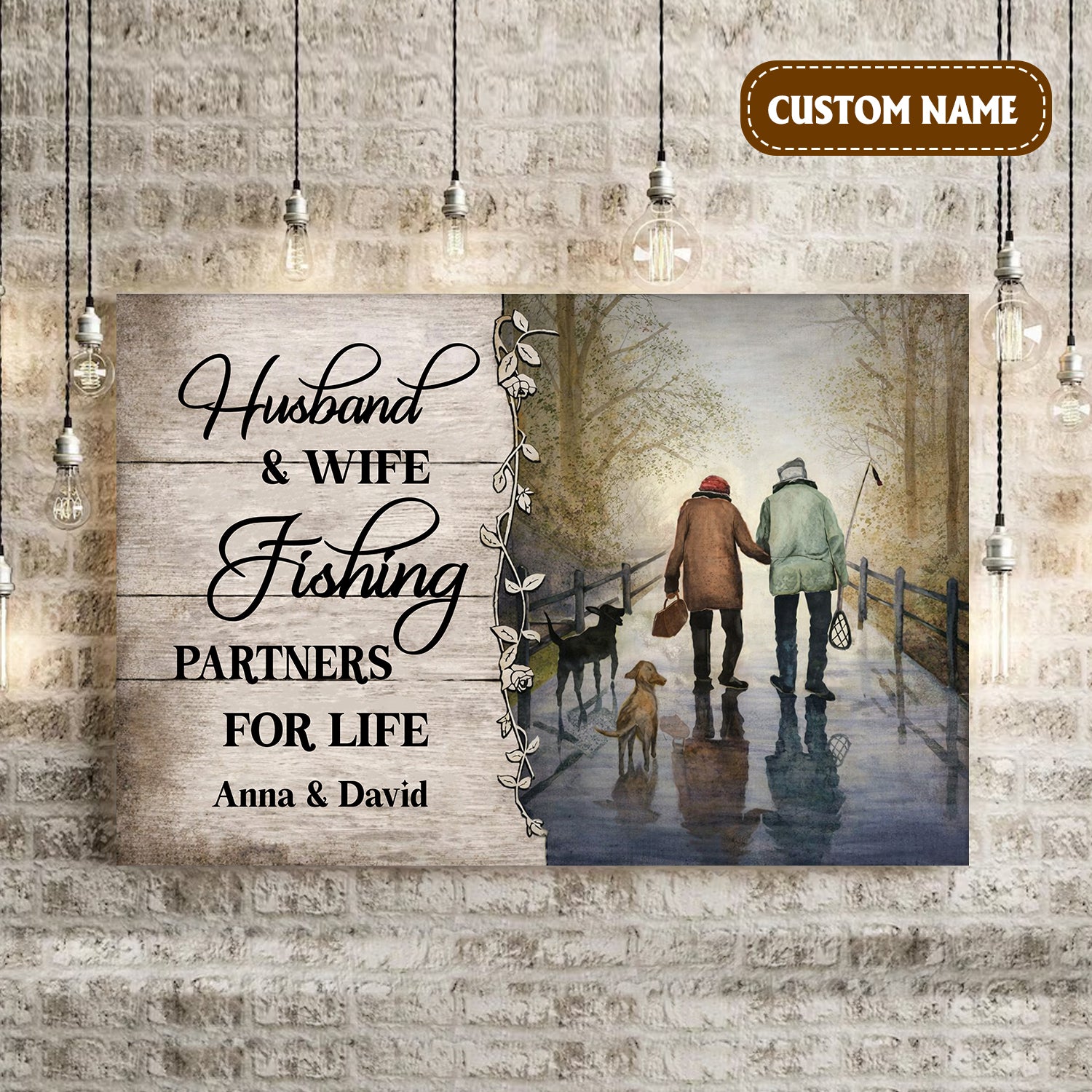 Husband And Wife Fishing Partners For Life Canvas Wall Art, Unique Valentine's Day Gifts, Couple Anniversary Gift