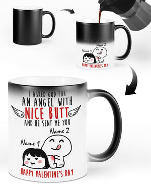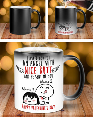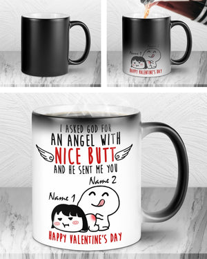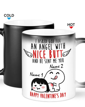I Asked God Custom Funny Couple Changing Mugs, Valentine Coffee Mug, Gift For Couple