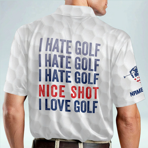 I Hate Golf Nice Short I Love Golf USA Flag Custom Golf Polo Shirts, Golf Gift For Men, Golfing Apparel