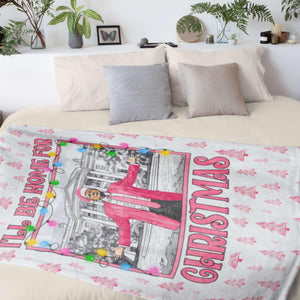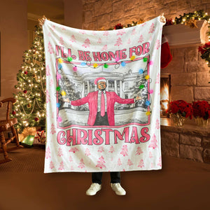 Get ready to deck the halls with this festive "I'll Be Home for Christmas" blanket! Featuring a cheerful Trump design with colorful Christmas lights and pink holiday accents, this soft throw is perfect for cozying up this season or adding a fun touch to your holiday decor.