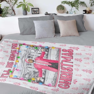 I’ll Be Home For Christmas Blanket Trump2024, Pink Santa Vintage, Christmas Blanket