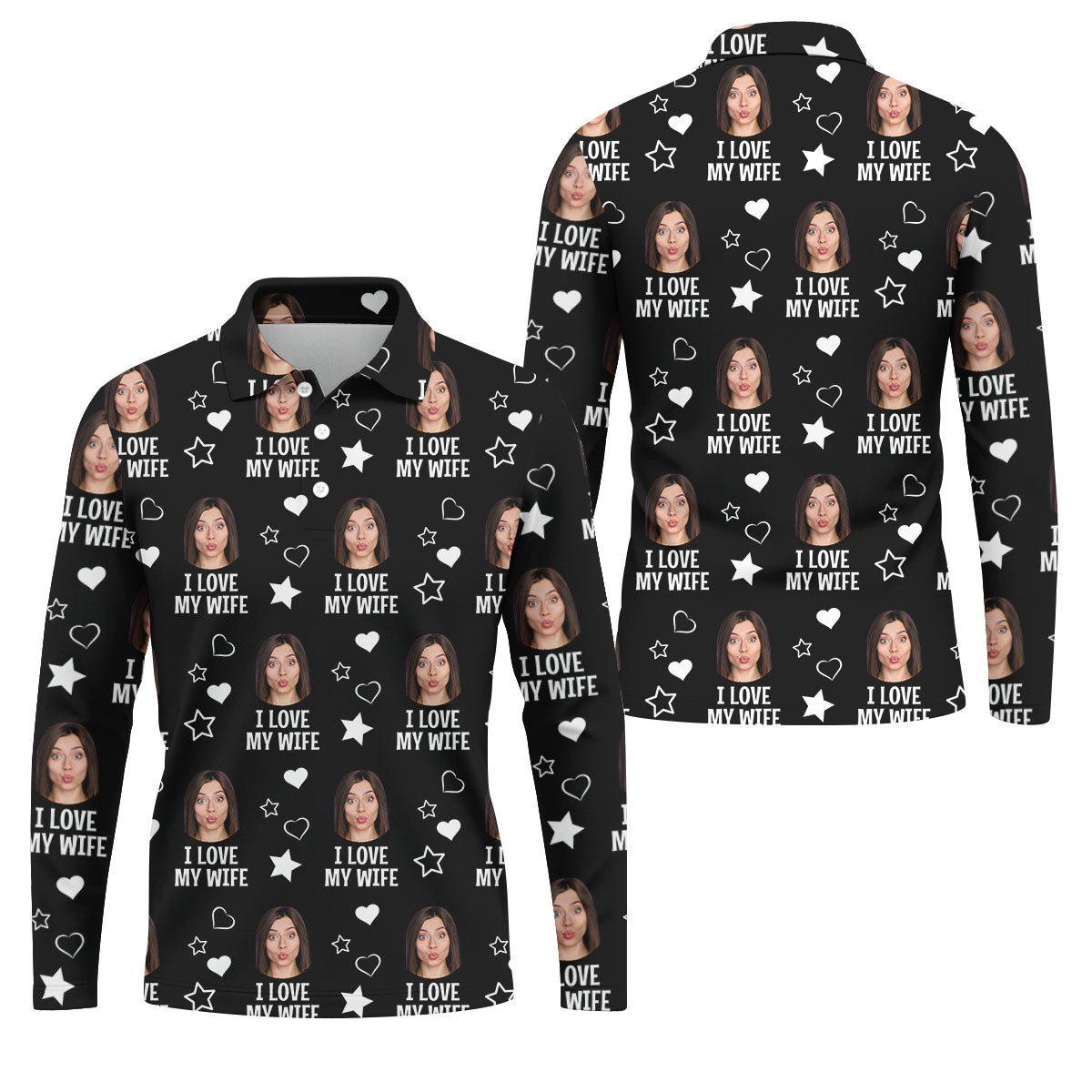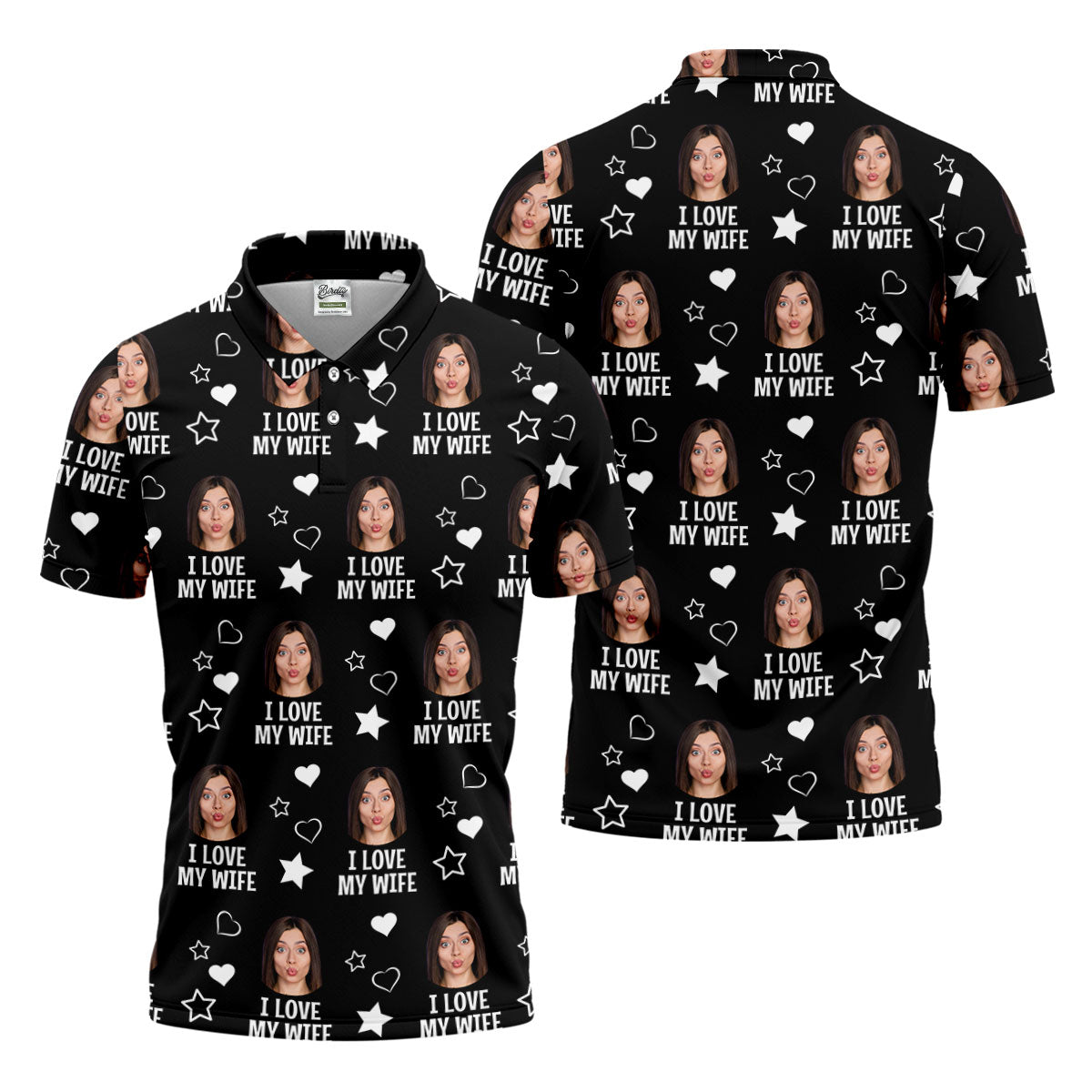 I Love My Wife Custom Face Black Golf Shirt, Fun Golf Shirts For Men, Valentines Golf Gift, Polo Shirts For Men