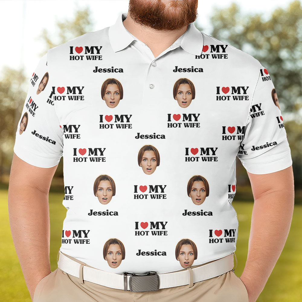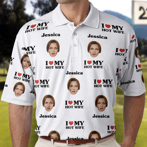 I Love My Hot Wife Custom Face Polo Shirt, Gift For Husband, Shirts for Men, Gift for Dad