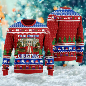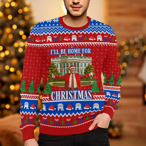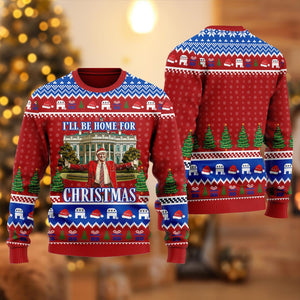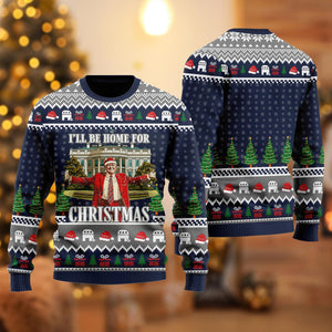 Trump2024 I'll Be Home Christmas Ugly Sweater, Funny Christmas Apparel, Christmas Shirts, Christmas Gift