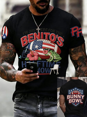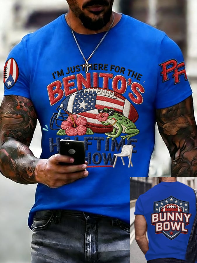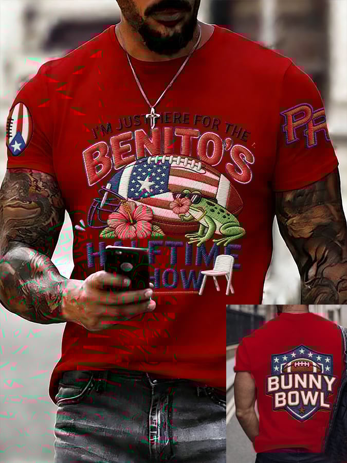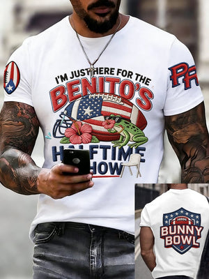 I'm Just Here For The Benito's Halftime Show Big Game Print Football Tee, Bunny Bowl Bad Game Day Bunny Shirt