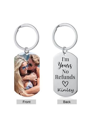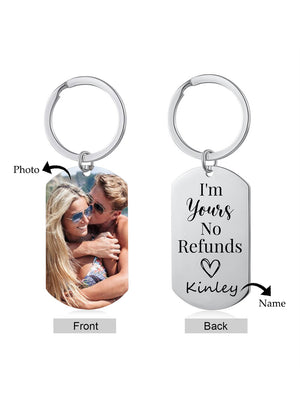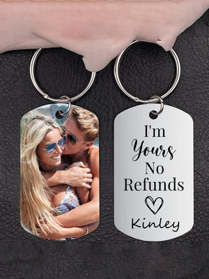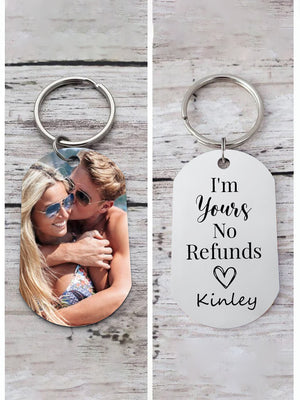 I'm Yours. No Refunds Custom Photo Aluminum Keychain, Gift For Couple