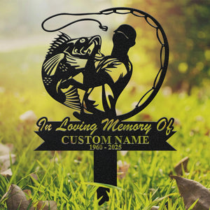 In Loving Memory Sign, Metal Fisherman Memorial Garden Stake, Custom Laser Cut Metal Signs, Memorial Plaque