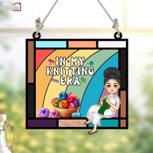 In My Knitting Era Personalized Window Hanging Suncatcher, Yarn Lover Gift, Craft Room Decor