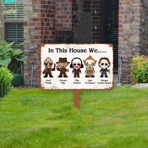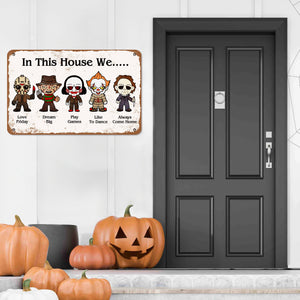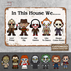 🎃 In This House We Personalized Horror Characters Metal Tin Sign