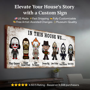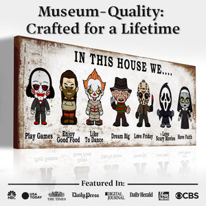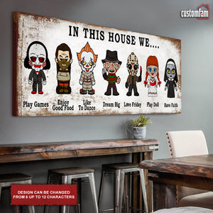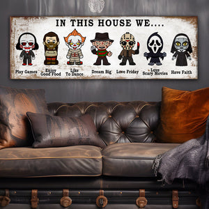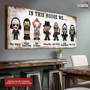 In This House We Horror Canvas, Horror Movies Sign, Halloween Decor