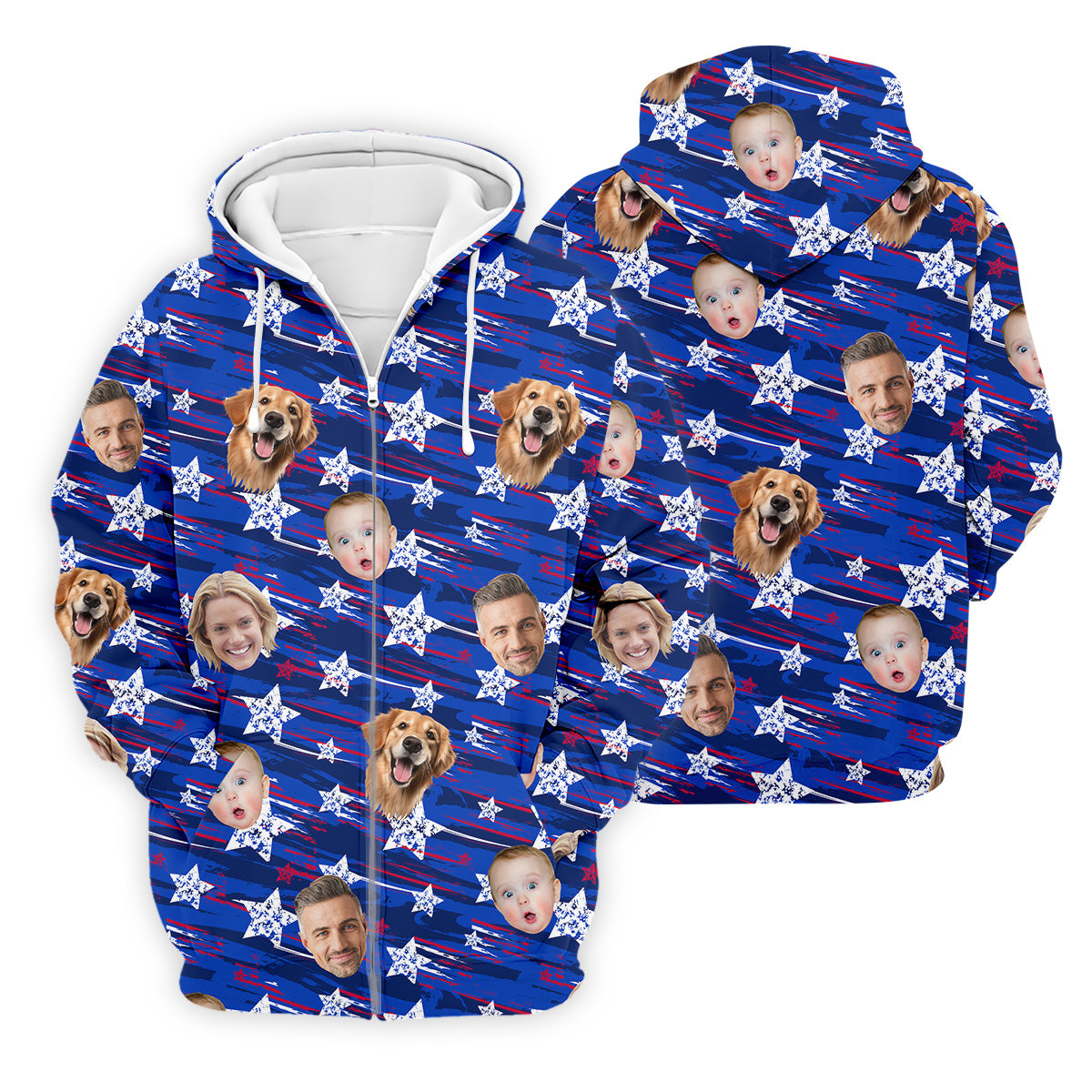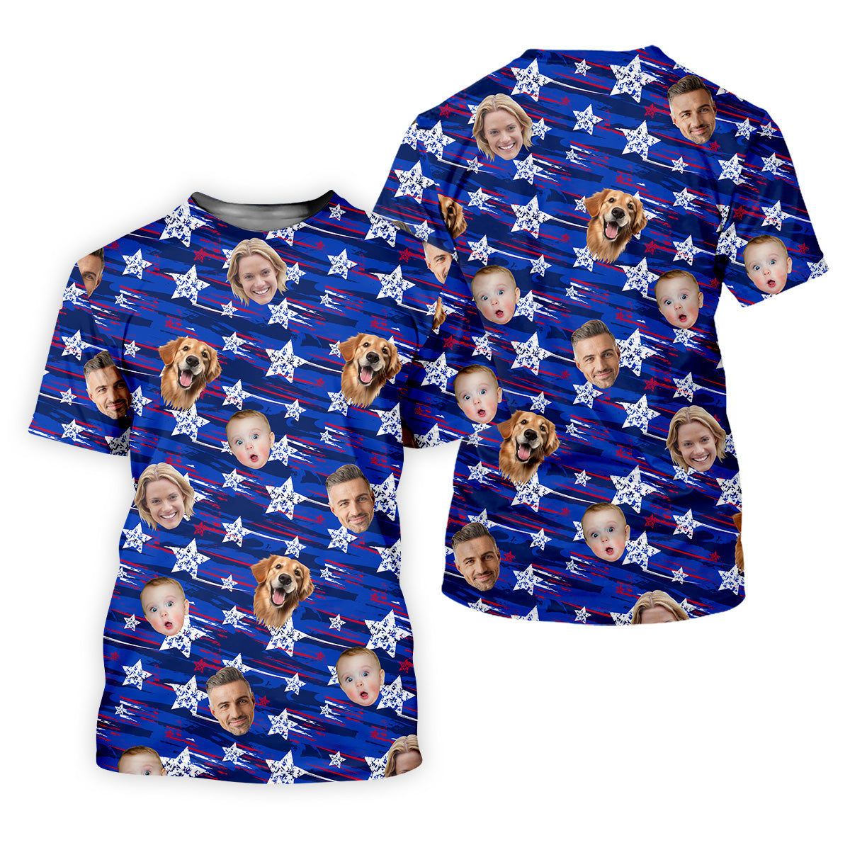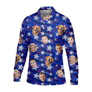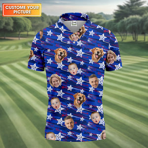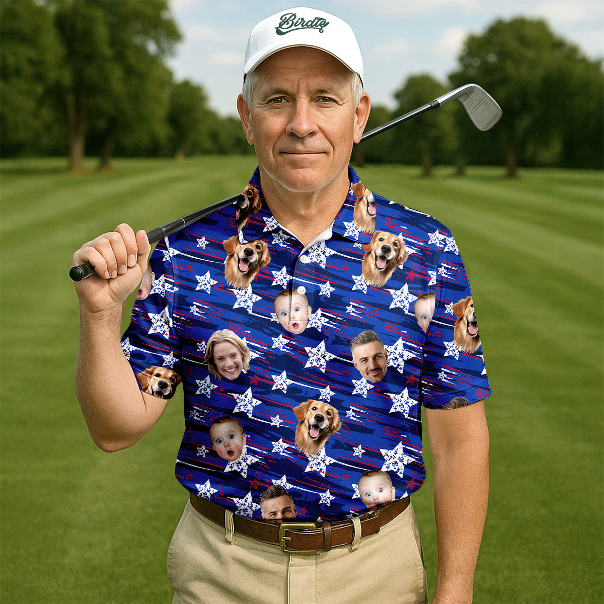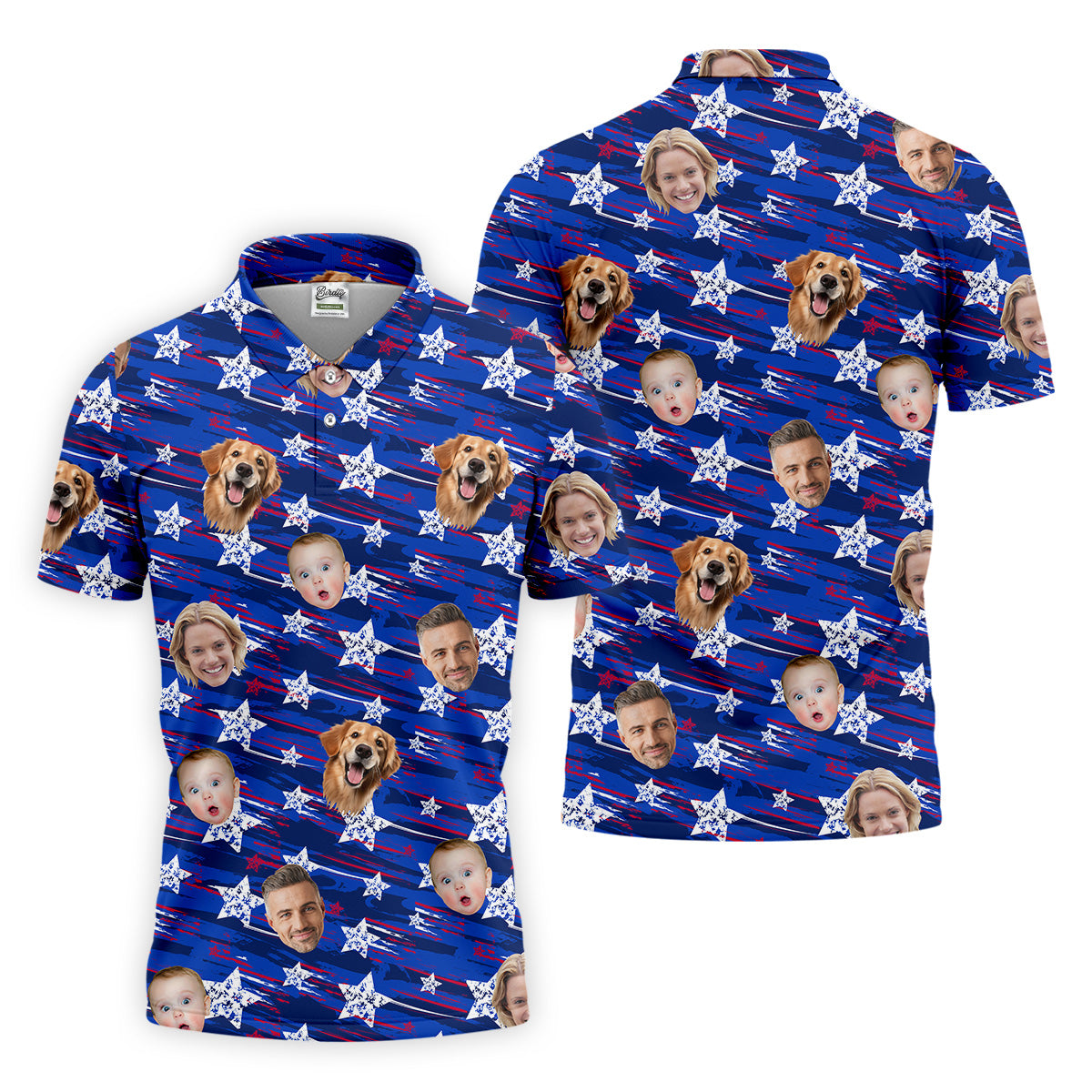 Independence Day Custom Shirts With Faces, Patriotic Golf Shirt, Men's Golf Polo Shirt, USA Golf Shirt