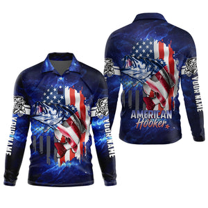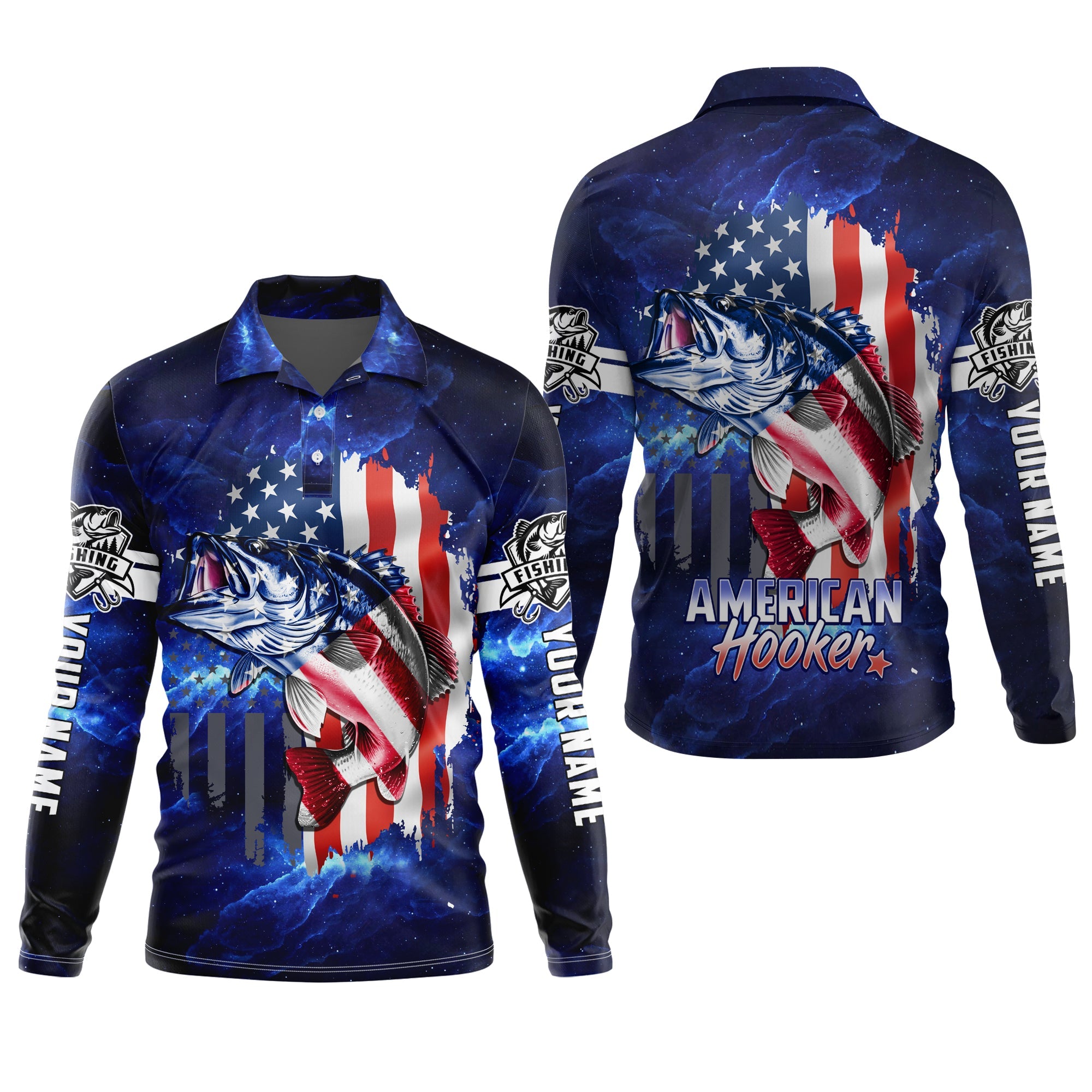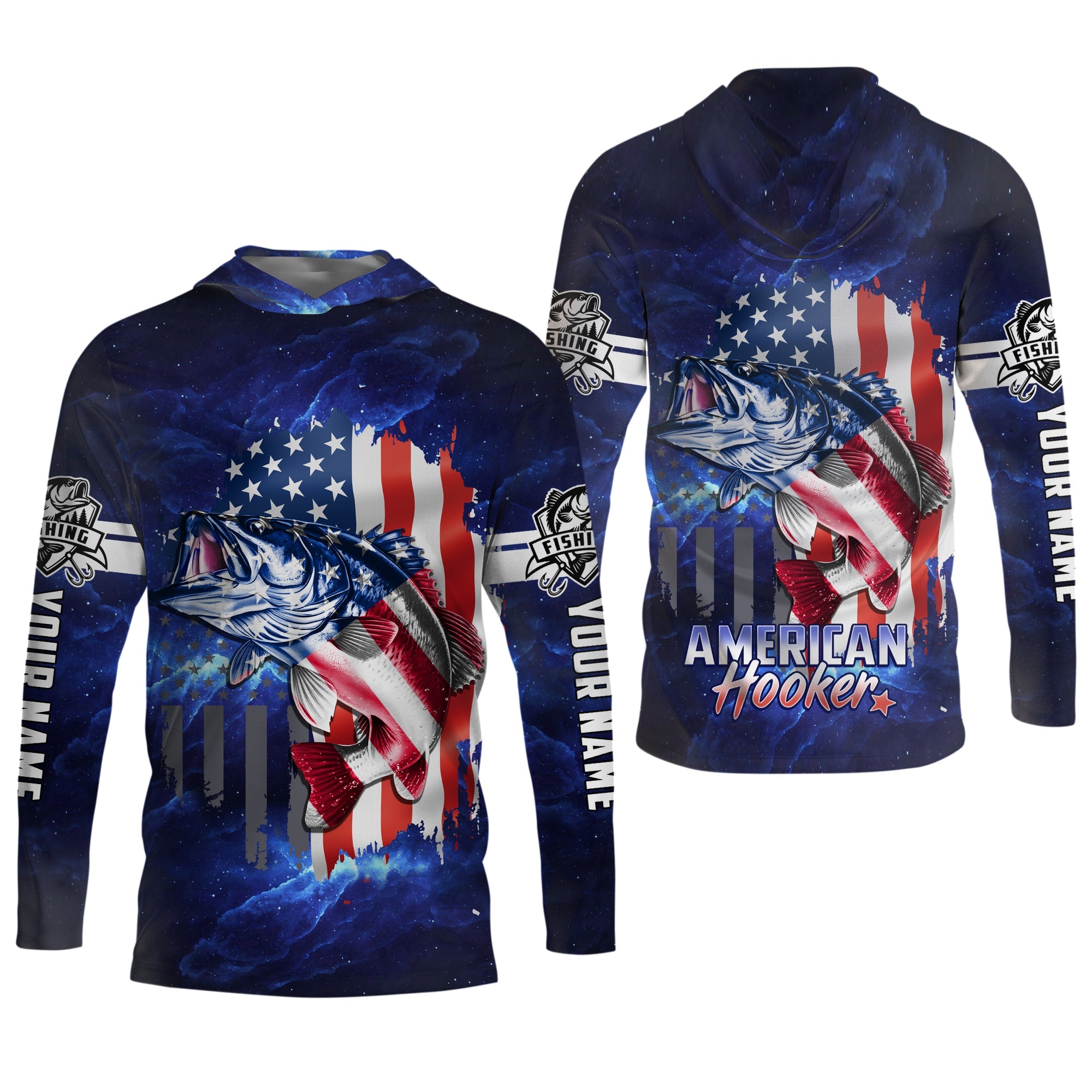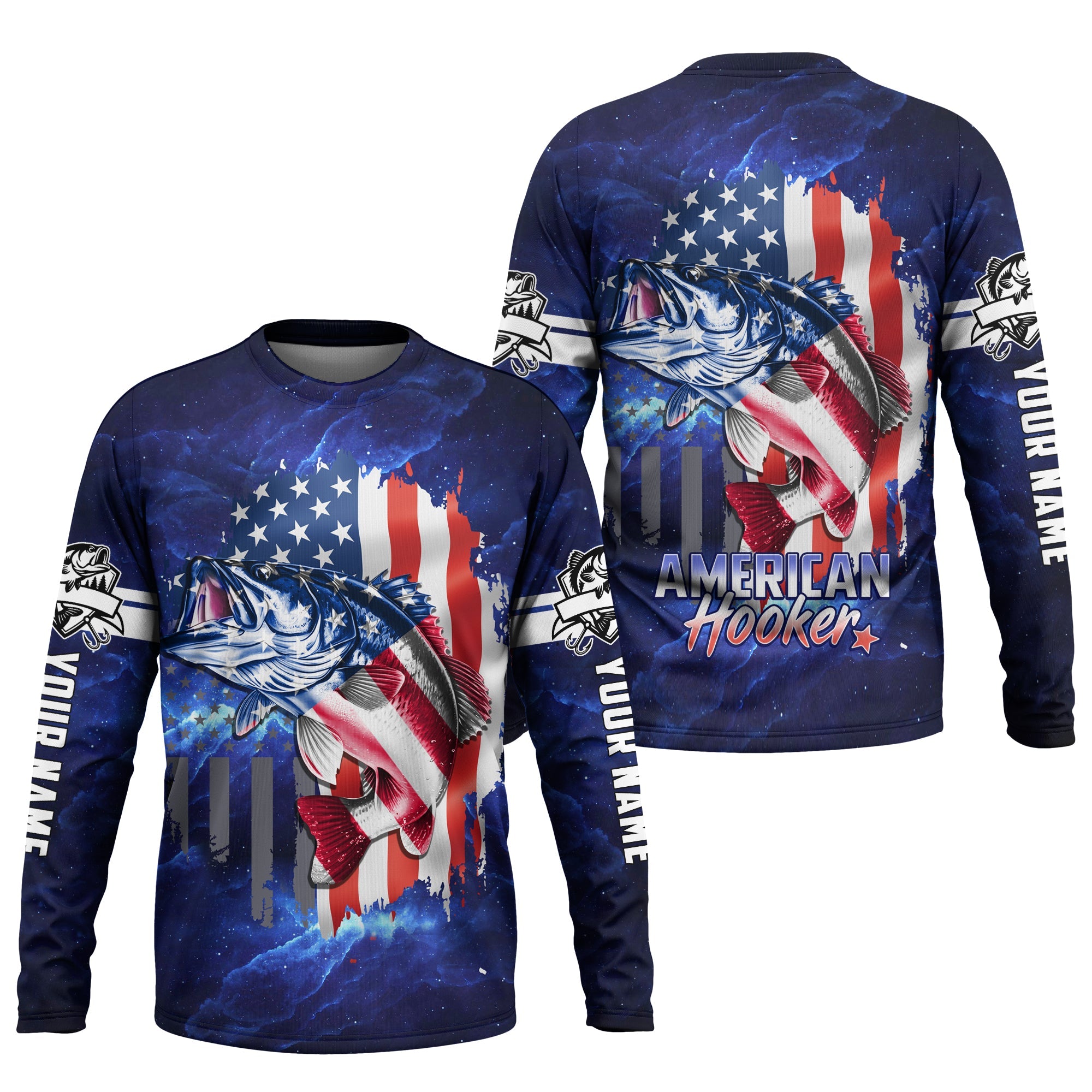 American Hooker Fishing UPF Shirts, American Flag Fish Shirt, UV Shirts For Men, Long Sleeve Fishing Shirts