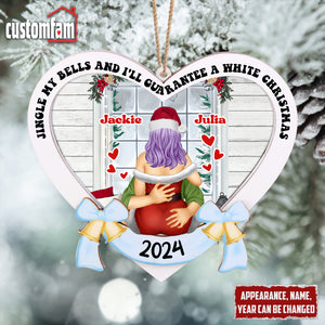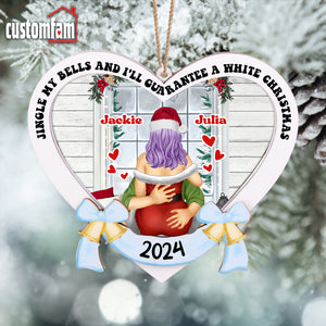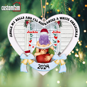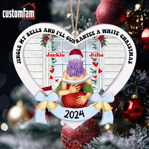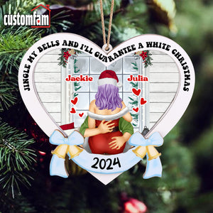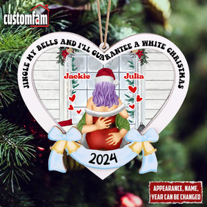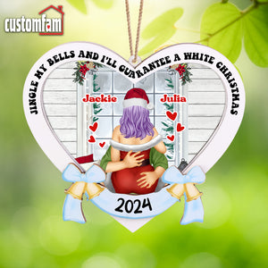 Customize this 2-layered ornament with your and your partner's names, making it a personalized and thoughtful addition to their holiday decor. The top layer features the humorous phrase, "Jingle My Bells And I'll Guarantee a White Christmas" while the bottom layer adds contrast and dimension, creating a standout piece for any Christmas tree.
