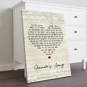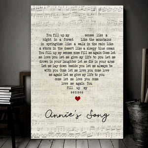 John Denver Annie's Song Script Heart Song Lyric Art Print Canvas Print Frames
