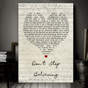Journey Don't Stop Believing Script Heart Song Lyric Art Print Canvas Print Frames