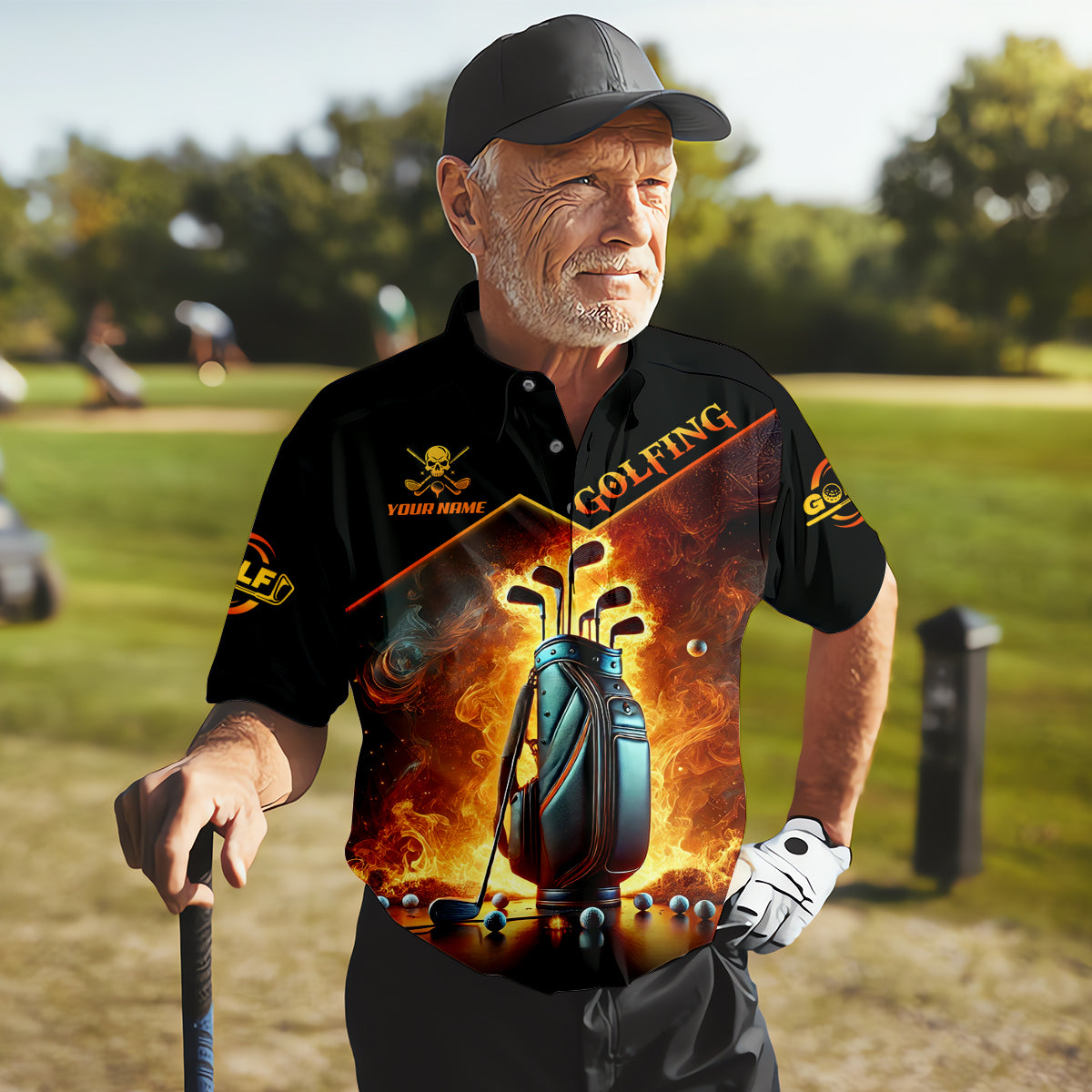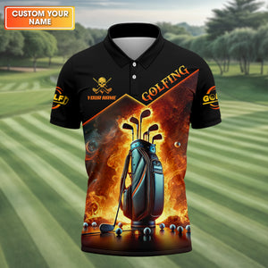 Eye-Catching Design: The dynamic “fire” color palette and witty slogan make this polo a standout on and off the course.