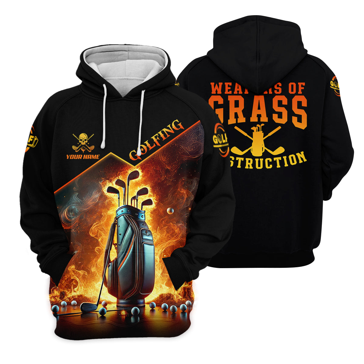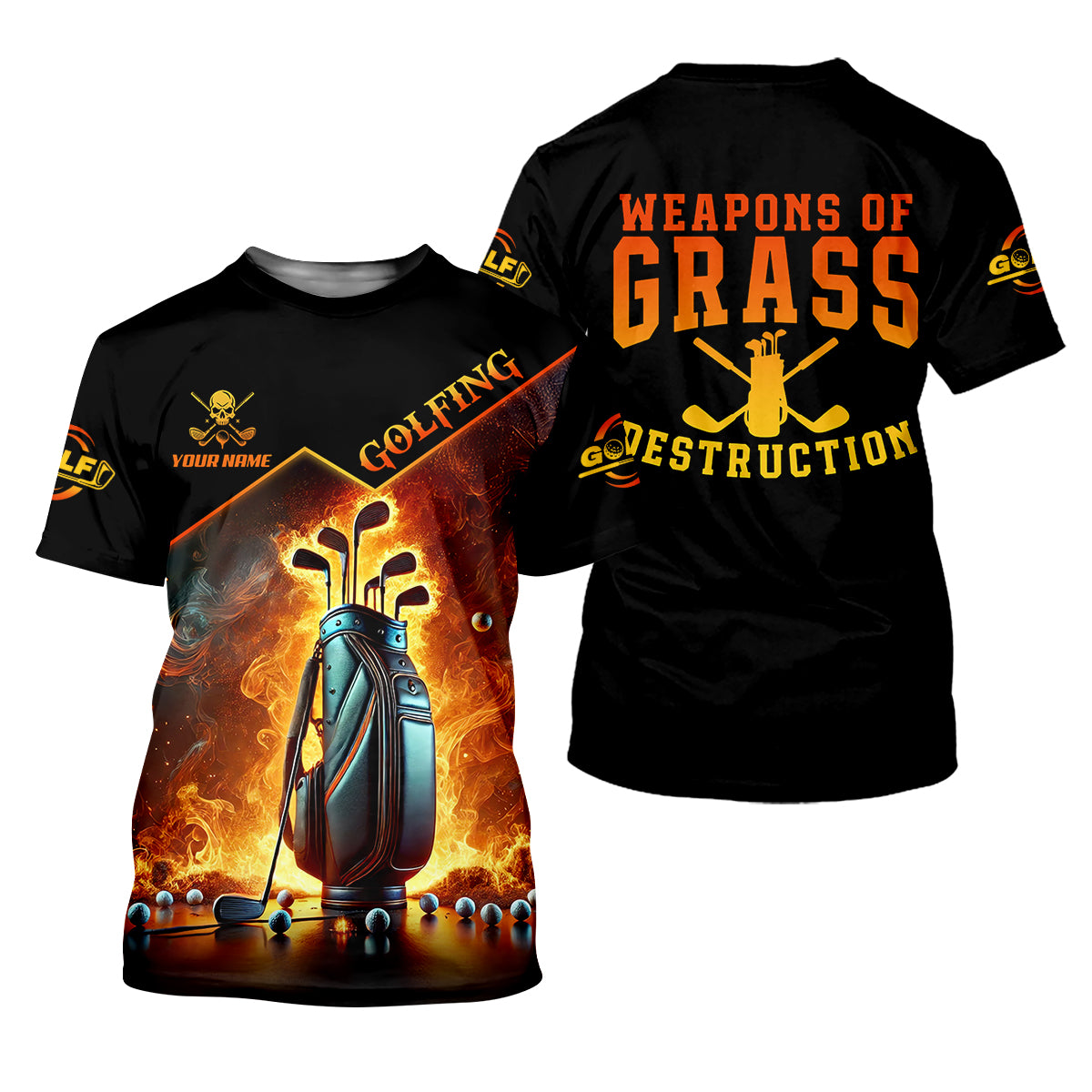Bring the heat to the green with this bold and hilarious golf polo! Featuring the statement-making phrase "Weapons of Grass Destruction", this shirt is perfect for golfers who take their swing seriously—but not themselves. Whether you're teeing off or kicking back at the clubhouse, this fiery design turns heads and sparks conversation.