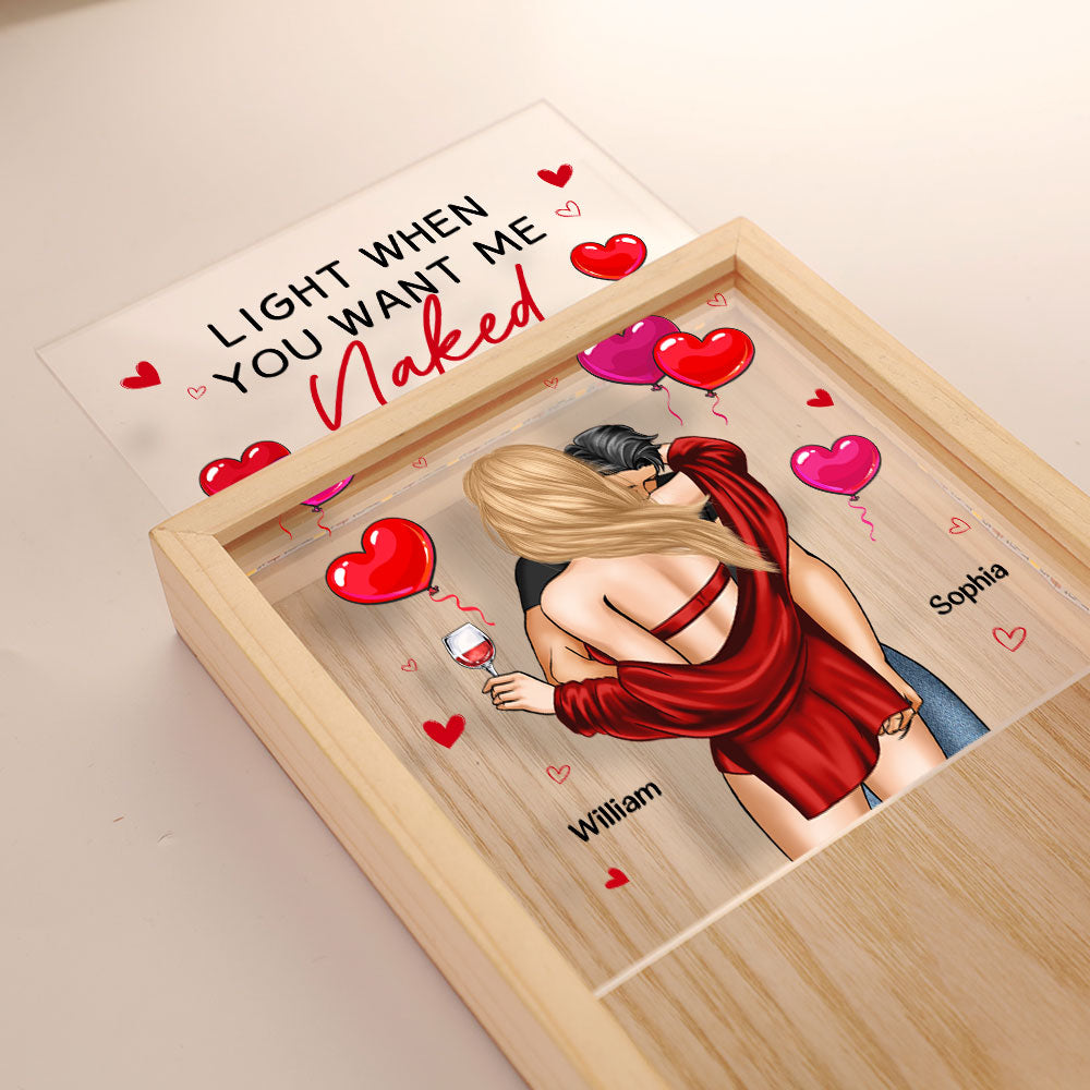 Light When You Want Me Naked Personalized Frame Light Box, Couple Valentine Gift