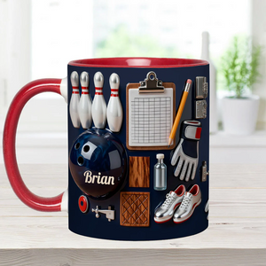 Love Bowling Personalized Mugs, Lovers Bowling Accent Mug, Unique Valentine's Day Gifts