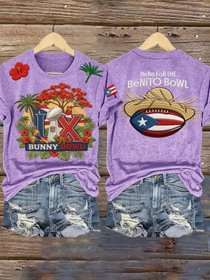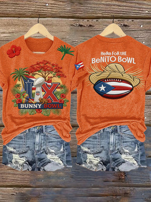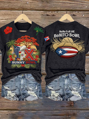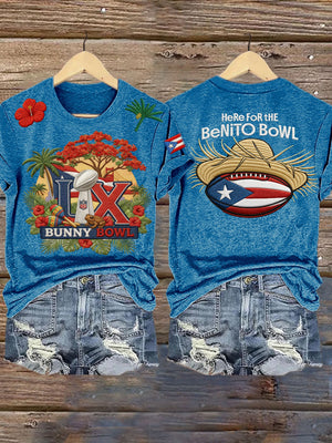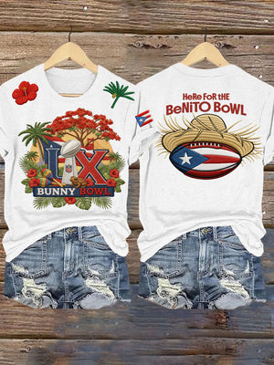 LX Bunny Bowl Here For The Benito Bowl Football Theme Big Game Football Tee, Game Day Bunny Shirt