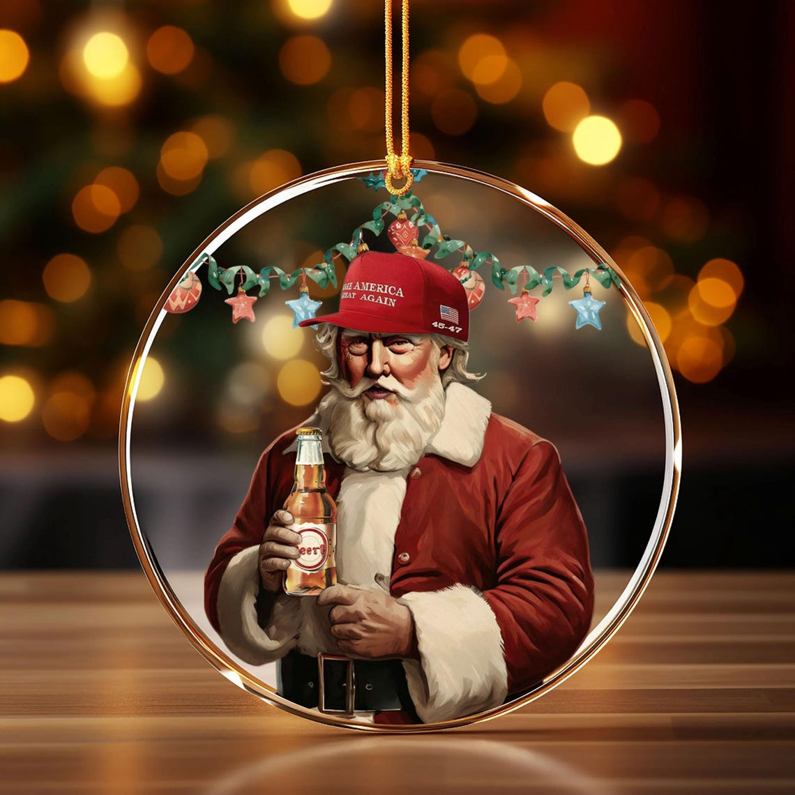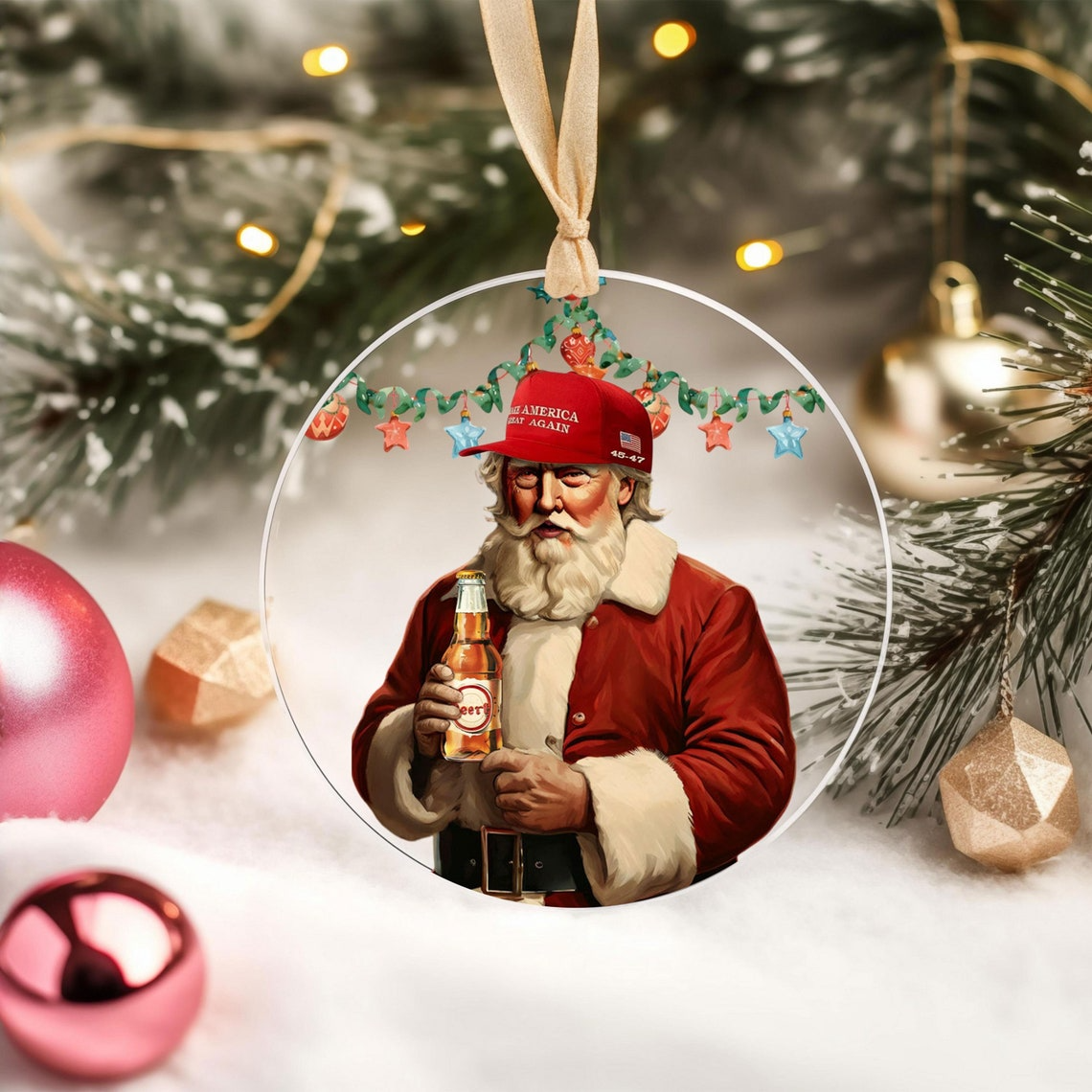 MAGA2024 Santa Make America Great Again Acrylic Ornament, Funny Trump Beer Ornament