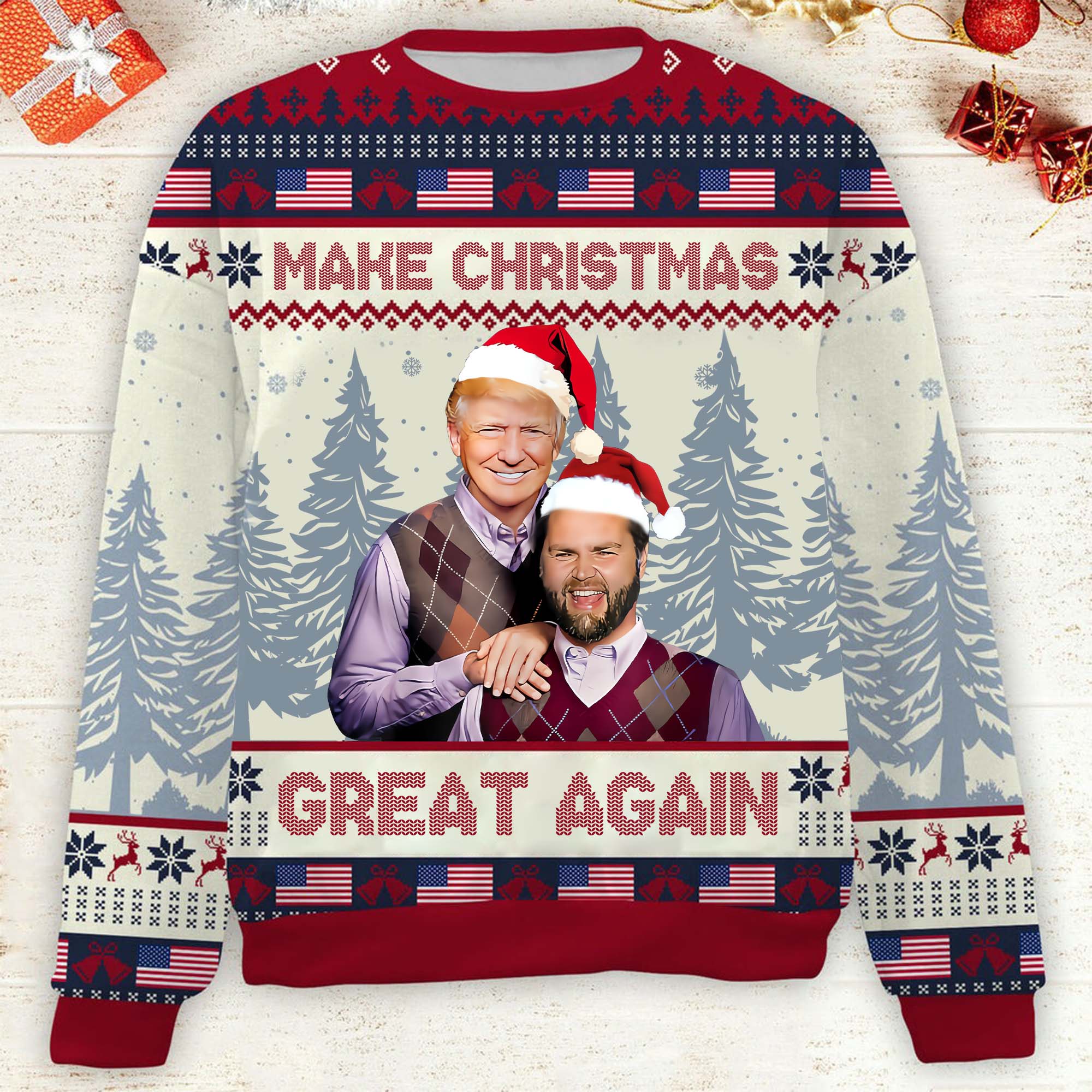 Make Christmas Great Again Funny Humorous Trump2024 Christmas Ugly Sweater, Funny Political Shirts