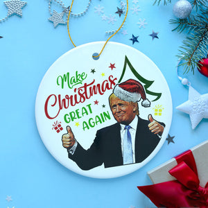 Make Christmas Great Again Trump2024 Ceramic Christmas Ornaments, Funny Political Ornament