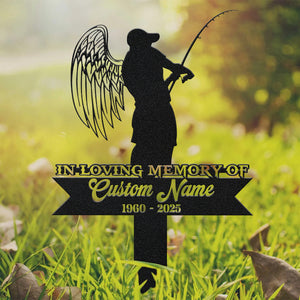 Man Casting Fishing Pole Metal Name Signs, Large Metal Wall Art, Outdoor Metal Art, Metal Garden Stakes