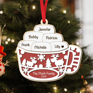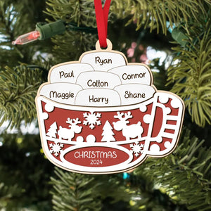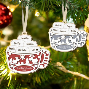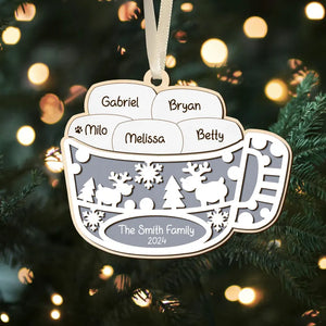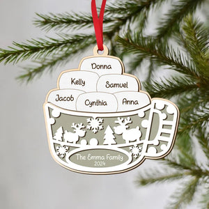 Marshmallow Hot Cocoa Christmas Wood Ornament, Family Gift Ideas For Christmas, Personalised Tree Decorations
