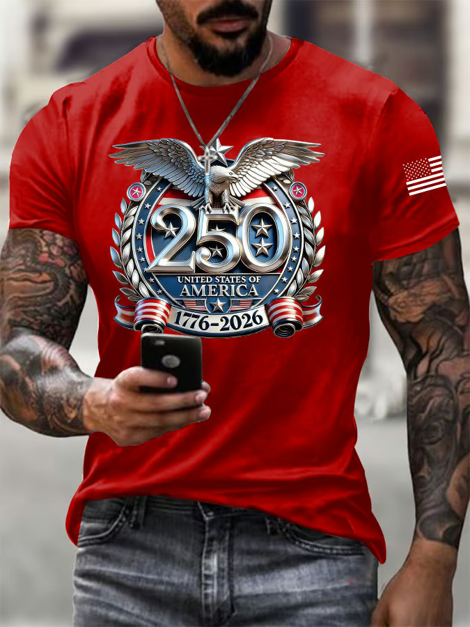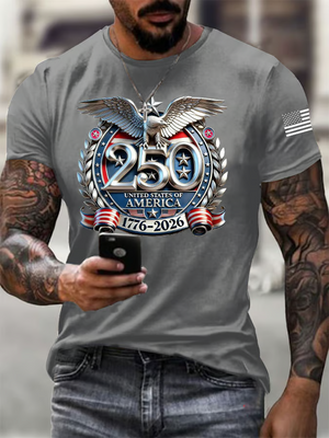 Men's Casual USA 250th Anniversary Printed Short-Sleeve T-Shirt, USA Flag Unisex Shirt, Patriotic Gift