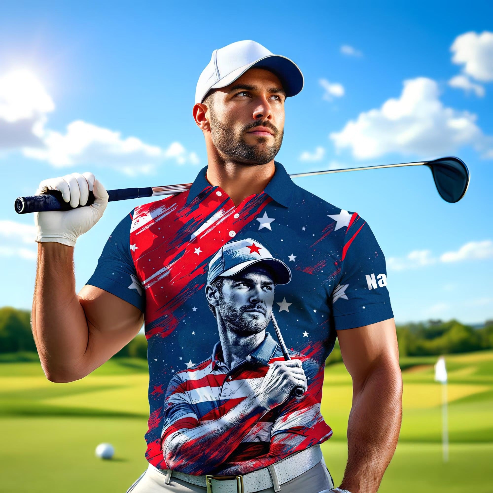 Whether you're looking for the perfect 4th of July golf outfit, a unique Father’s Day gift, or just want to tee off in all-American style, this one-of-a-kind shirt delivers confidence, comfort, and unforgettable impact.