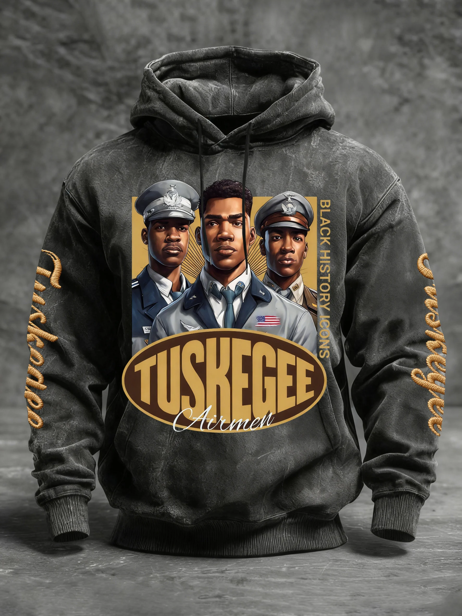 Men's Western Retro African American Air Force Print Hooded Sweatshirt, Black History Month Gift