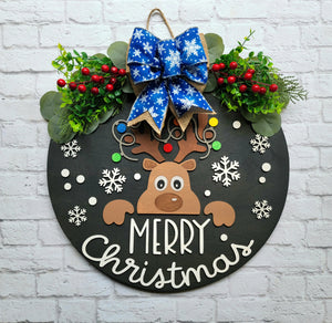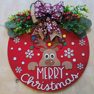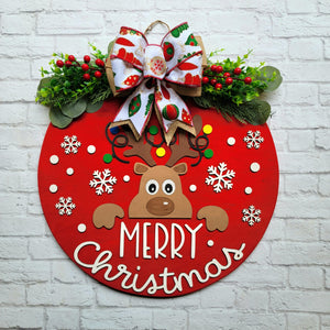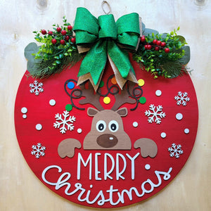Merry Christmas Door Hanger, Christmas Welcome Sign, Reindeer Decor