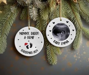 Merry Christmas Mommy and Daddy Ceramic Christmas Ornament, Pregnancy Announcement Ornament, Baby Announcement