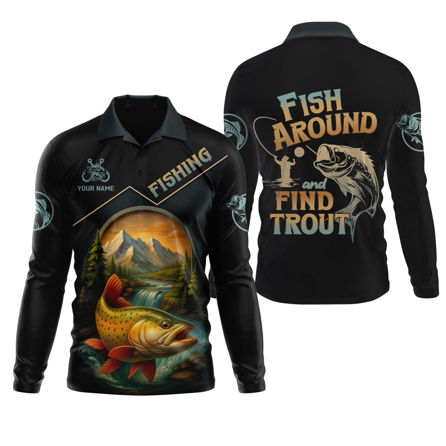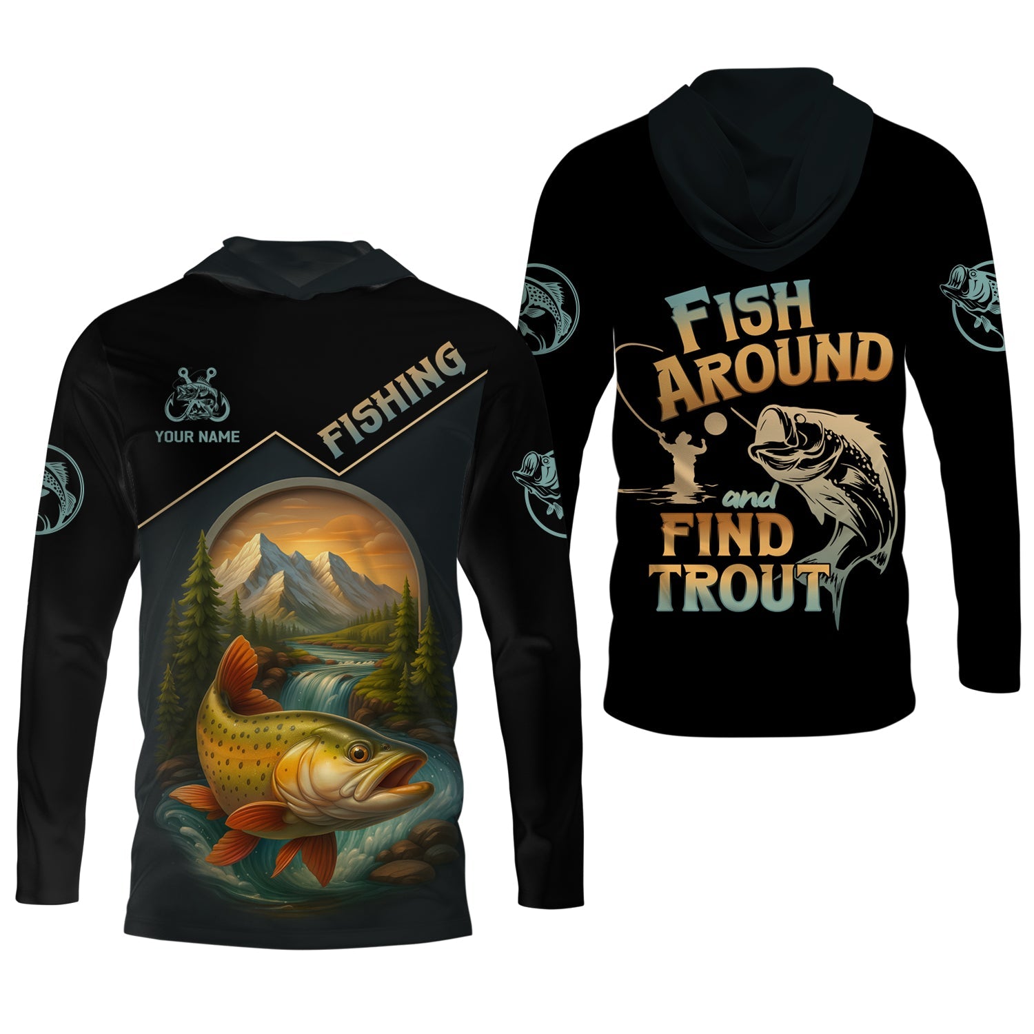 Fish Around Find Trout Fishing Graphic Tees, Hooded Sun Shirt, Personalized Fishing Gifts, UV Shirts For Men