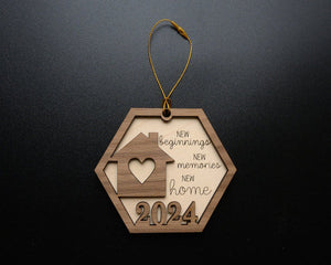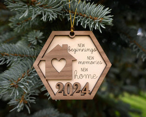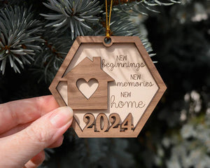New Beginnings New Memories New Home Wood Ornament, Christmas Ornaments