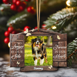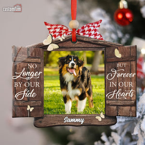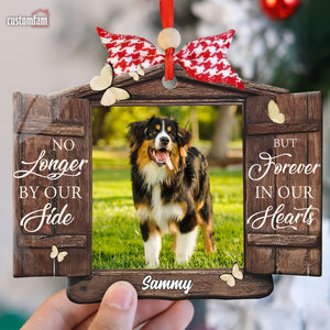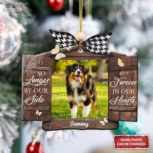 No Longer By Our Side But Forever In Our Hearts Personalized Memorial Photo Ornament, Gift For Pet Owner