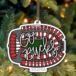 Show your Ohio State pride this holiday season with the Ohio Football Stadium Ornament. This intricately designed ornament captures the essence of the iconic Ohio Stadium, featuring detailed features and the bold scarlet and gray colors that define the Buckeyes.