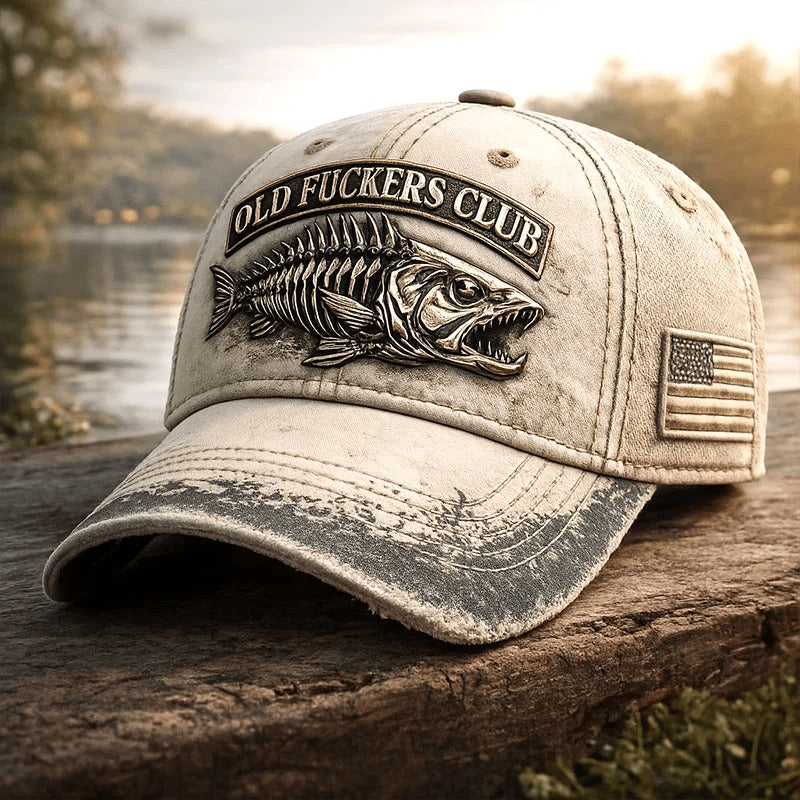 Old Fckers Club Vintage Cap, Fishing Cap, Printed Trucker Hat, Funny Gift for Dad, Grumpy Old Man Hat