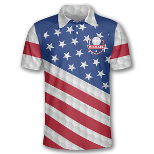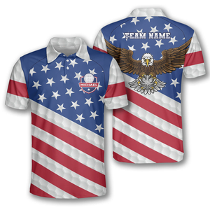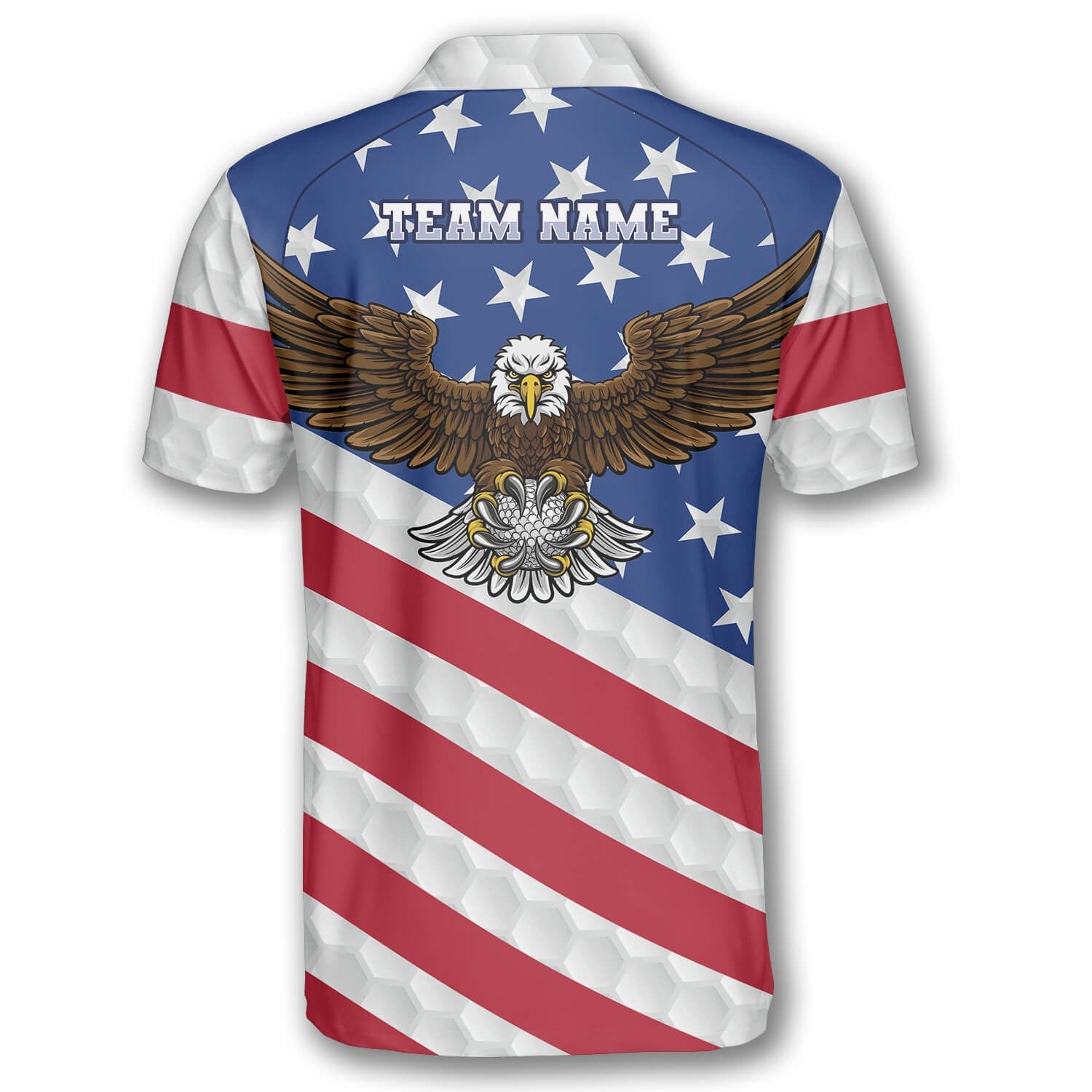 Patriotic American Flag Eagle Custom Golf Polo Shirts for Men, Long Sleeve Golf Shirts, Golf Lovers Gift